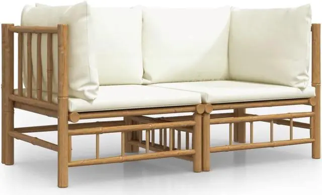 Enjoy a cup of coffee or tea with pleasant weather in your outdoor space with this elegant bamboo patio corner sofa!