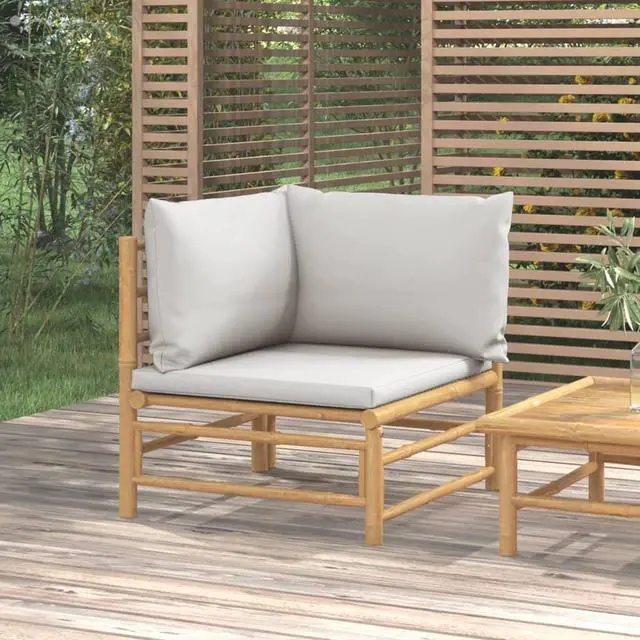 Enjoy a cup of coffee or tea with pleasant weather in your outdoor space with this elegant bamboo patio corner sofa!