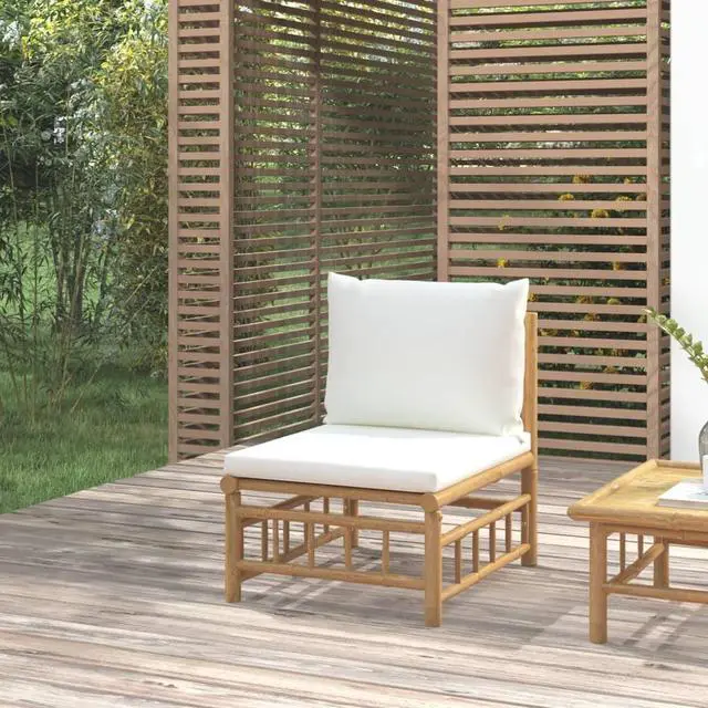 Enjoy a cup of coffee or tea with pleasant weather in your outdoor space with this elegant bamboo patio middle sofa!