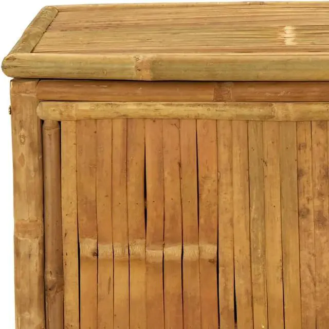 This bamboo patio storage box provides ample storage space for garden furniture cushions, toys, gardening tools, and anything else you like to keep within reach in the outdoor living space. It can also be used indoors.