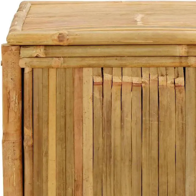 This bamboo patio storage box provides ample storage space for garden furniture cushions, toys, gardening tools, and anything else you like to keep within reach in the outdoor living space. It can also be used indoors.