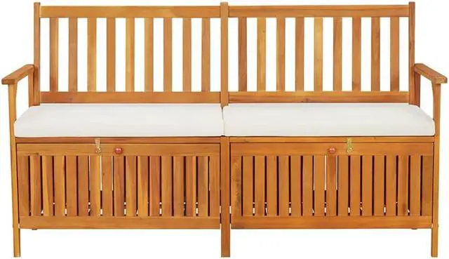 Clear the clutter in your indoor and outdoor decor with this versatile wooden patio storage bench!