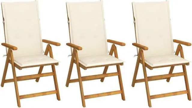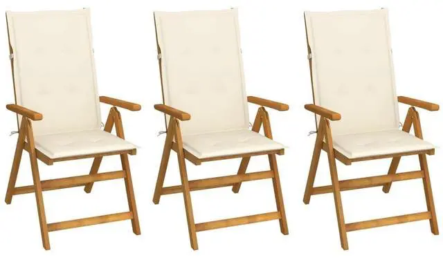 The folding chair is made of solid acacia wood, a tropical hardwood, making it stable and durable. The oil-finished surface is easy to clean with a damp cloth. The dining chair can be adjusted to 5 positions, providing you with optimal seating comfort. It can also be folded to save space when not in use. Additionally, the included cushions provide extra comfort while lounging or dining. Each cushion features two sets of ropes on both sides and an elastic strap behind backrest to fix it tightly to the chair.