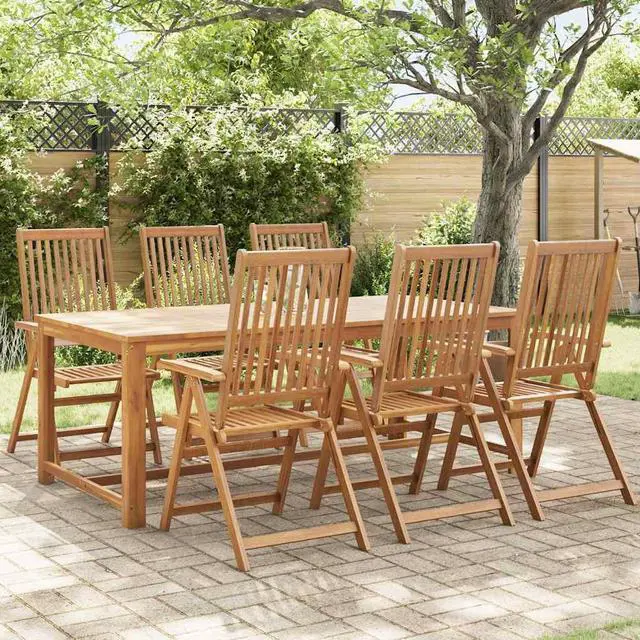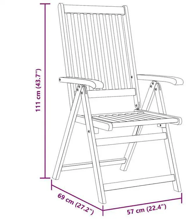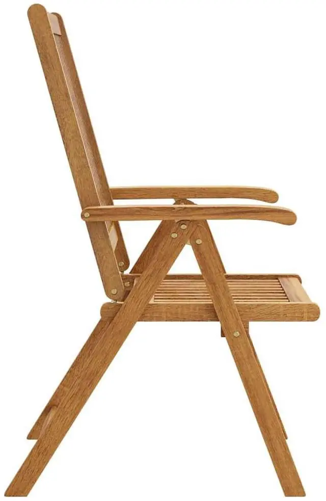 The folding chair is made of solid acacia wood, a tropical hardwood, making it stable and durable. The oil-finished surface is easy to clean with a damp cloth. The dining chair can be adjusted to 5 positions, providing you with optimal seating comfort. It can also be folded to save space when not in use.