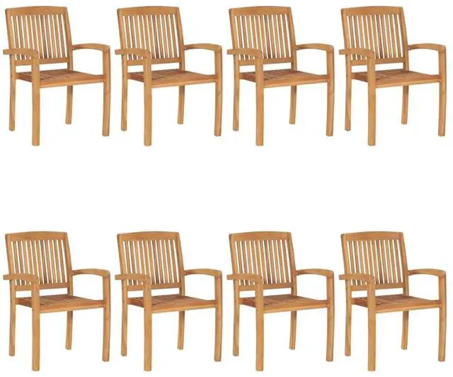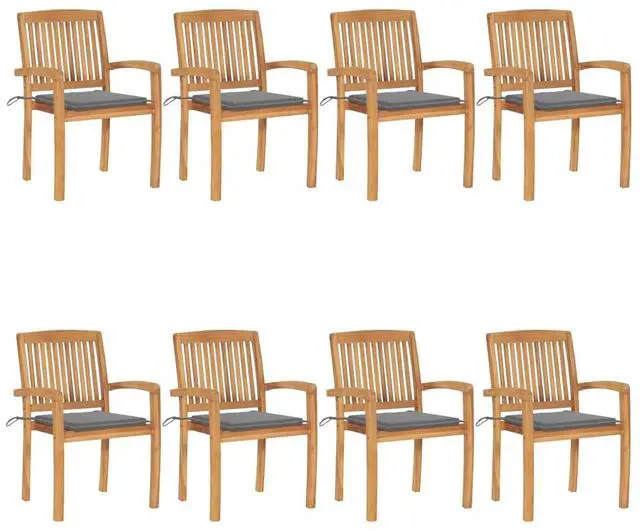 vidaXL 8x Solid Teak Wood Stacking Patio Chairs with Cushions Garden Chairs