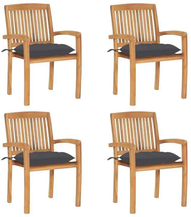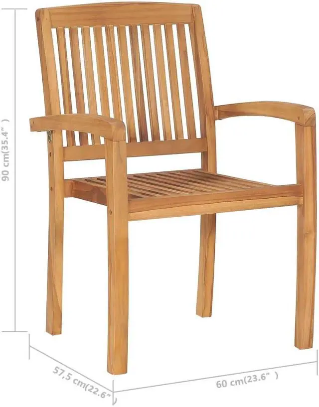 This set of teak furniture is constructed from extremely durable teak hardwood and is seasoned, kiln-dried and fine sanded to give a very smooth appearance. Teak wood is known for its exceptional strength and weather resistance, making it far more suitable for patio furniture than any other kind of wood. Teak wood is the perfect choice if you want to purchase a long-lasting piece of patio furniture. It is easy to maintain and clean with a damp cloth. Additionally, the dining chair can be stacked to save storage space when not in use. What's more, the included cushions provide extra comfort. Each cushion has 2 sets of ropes to fix it on the chair tightly.