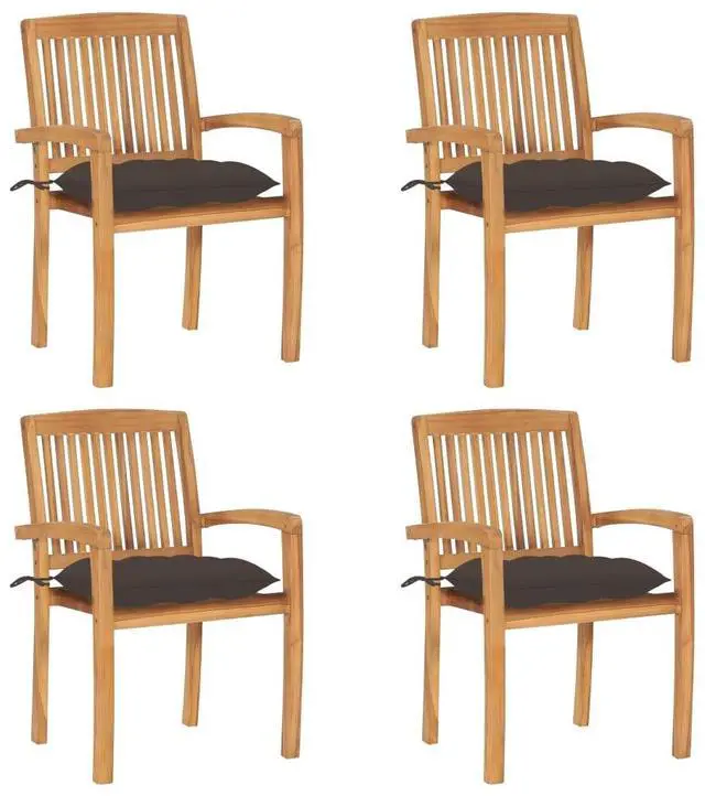 Add a touch of rustic charm to your dining room, garden or patio with this wooden stacking patio chair with cushion set! The dining chair set takes your indoor or patio living space to a higher level with slatted and elegant design.
