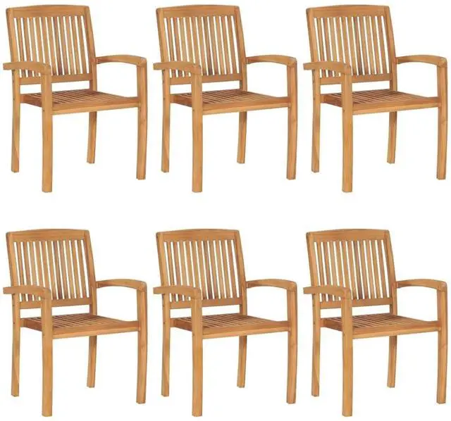 vidaxL 6x Solid Teak Wood Stacking Patio Chairs with Cushions Garden Seat