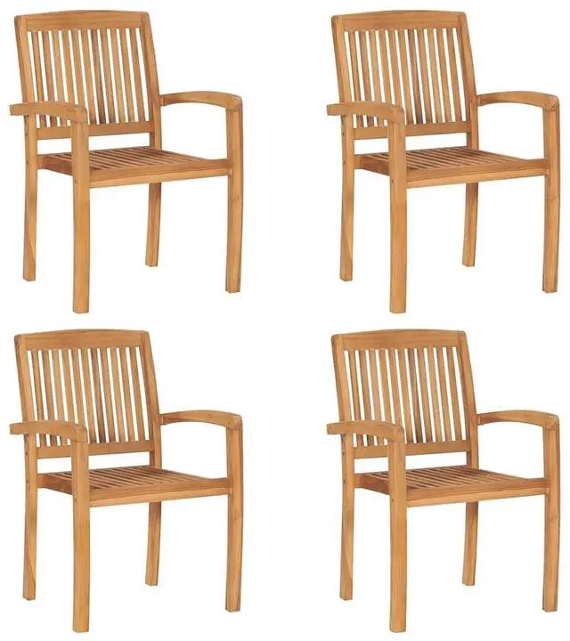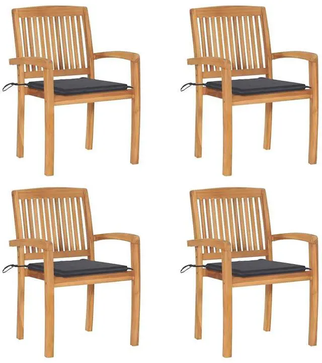 This set of teak furniture is constructed from extremely durable teak hardwood and is seasoned, kiln-dried and fine sanded to give a very smooth appearance. Teak wood is known for its exceptional strength and weather resistance, making it far more suitable for patio furniture than any other kind of wood. Teak wood is the perfect choice if you want to purchase a long-lasting piece of patio furniture. It is easy to maintain and clean with a damp cloth. Additionally, the dining chair can be stacked to save storage space when not in use. What's more, the included cushions provide extra comfort. Each cushion has 2 sets of ropes to fix it on the chair tightly.