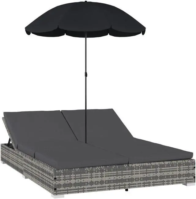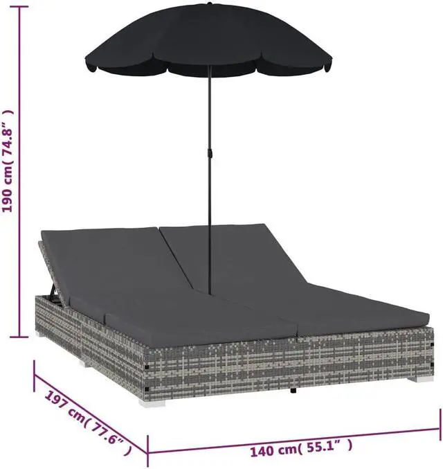 - Delivery includes 1 double sun lounger, 2 large cushions, and 1 durable umbrella.