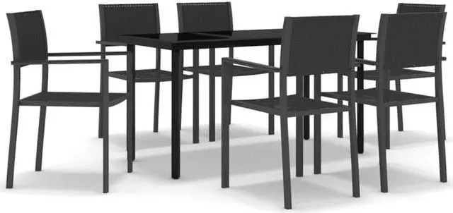 vidaXL Patio Dining Set 7 Piece Black Garden Outdoor Table and Chair Furniture