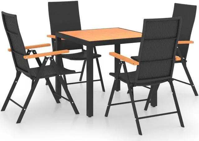 This garden dining set is an excellent choice for your garden, patio or terrace. The garden chair is made of PE rattan, making it weather-resistant and durable. The brown WPC armrests add to the chairs' stylish look. The table features a WPC tabletop with simple line, which is easy to clean and suitable for outdoor use. The aluminum frames also ensure the stability and sturdiness for this set. Thanks to the lightweight construction, this outdoor furniture set is easy to move.