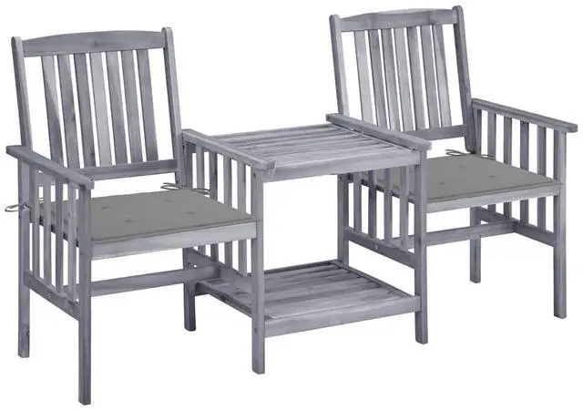 The table and chairs are made of solid acacia wood, enabling them exceedingly stable and sturdy. The sturdy tabletop and the lower shelf is ideal for holding your cups, books and other small items. And chairs' backrests and armrests ensure restful seating experience. Additionally, the cushions add extra comfort. Each cushion features two sets of ropes to fix it on the bistro set tightly.