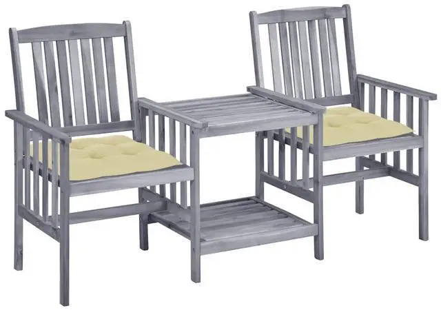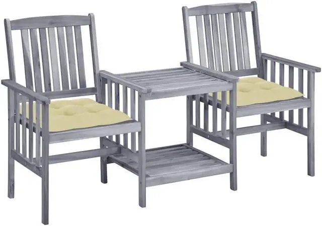 The table and chairs are made of solid acacia wood, enabling them exceedingly stable and sturdy. The sturdy tabletop and the lower shelf is ideal for holding your cups, books and other small items. And chairs' backrests and armrests ensure restful seating experience. Additionally, the cushions add extra comfort. Each cushion features two sets of ropes to fix it on the bistro set tightly.