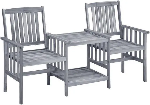 Get a buzz out of a wonderful tea time with this rustic wooden garden chairs with tea table. It will make a truly user-friendly and eye-catching addition to your garden and patio. The table and chairs are made of solid acacia wood, enabling them exceedingly stable and sturdy. The sturdy tabletop and the lower shelf is ideal for holding your cups, books and other small items. And chairs' backrests and armrests ensure restful seating experience. Additionally, the cushions add extra comfort. Each cushion features two sets of ropes to fix it on the bistro set tightly.