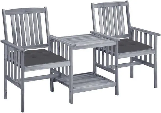 Get a buzz out of a wonderful tea time with this rustic wooden garden chairs with tea table. It will make a truly user-friendly and eye-catching addition to your garden and patio. The table and chairs are made of solid acacia wood, enabling them exceedingly stable and sturdy. The sturdy tabletop and the lower shelf is ideal for holding your cups, books and other small items. And chairs' backrests and armrests ensure restful seating experience. Additionally, the cushions add extra comfort. Each cushion features two sets of ropes to fix it on the bistro set tightly.