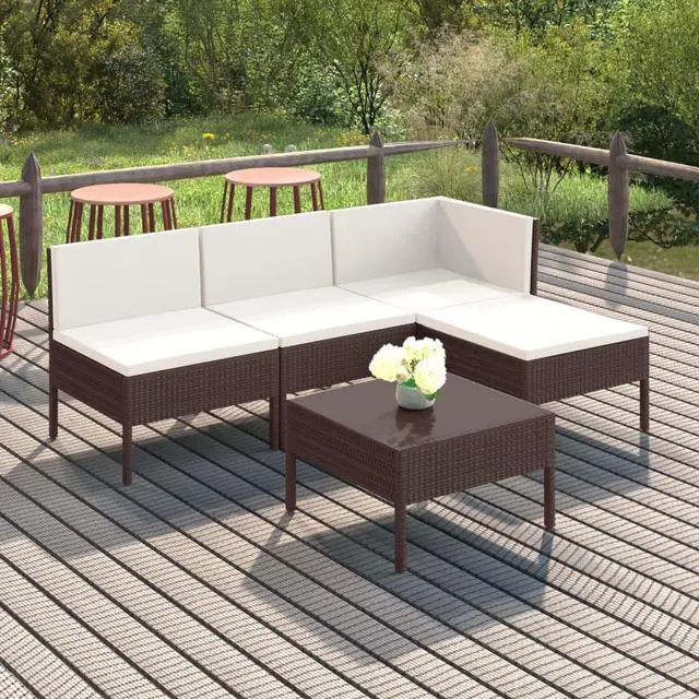 Create an eye-catching and relaxing lounge area that you have always dreamed of with this patio lounge set. You can enjoy a relaxing, sunny afternoon or summer evening with your family and friends on this garden furniture set! With the weather-resistant PE rattan, this outdoor lounge set is easy to clean and maintain. The powder-coated steel frame makes the patio lounge set stable and sturdy. Equipped with thick and soft cushions, this garden lounge set will provide ultimate seating comfort. The easy-to-clean polyester covers can be removed and washed. Additionally, thanks to its lightweight and modular design, you can move this set around your house with great ease.