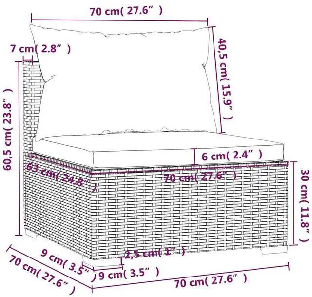 Corner/Middle sofa dimensions (each): 27.6" x 27.6" x 23.8" (L x W x H)