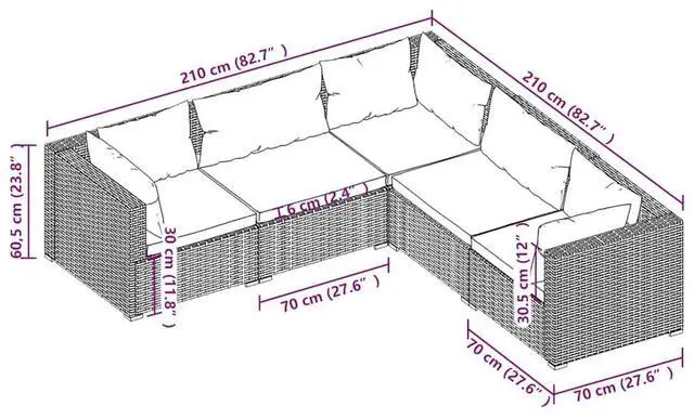 Corner/Middle sofa dimensions (each): 27.6" x 27.6" x 23.8" (L x W x H)