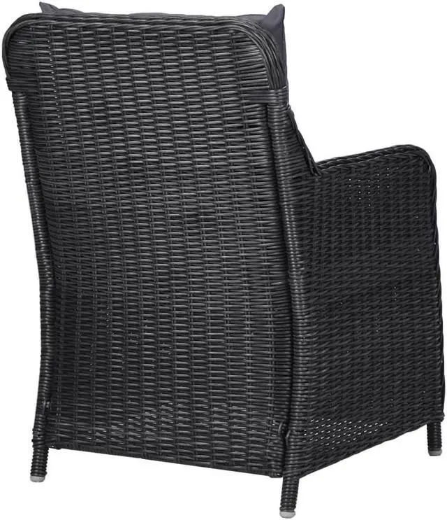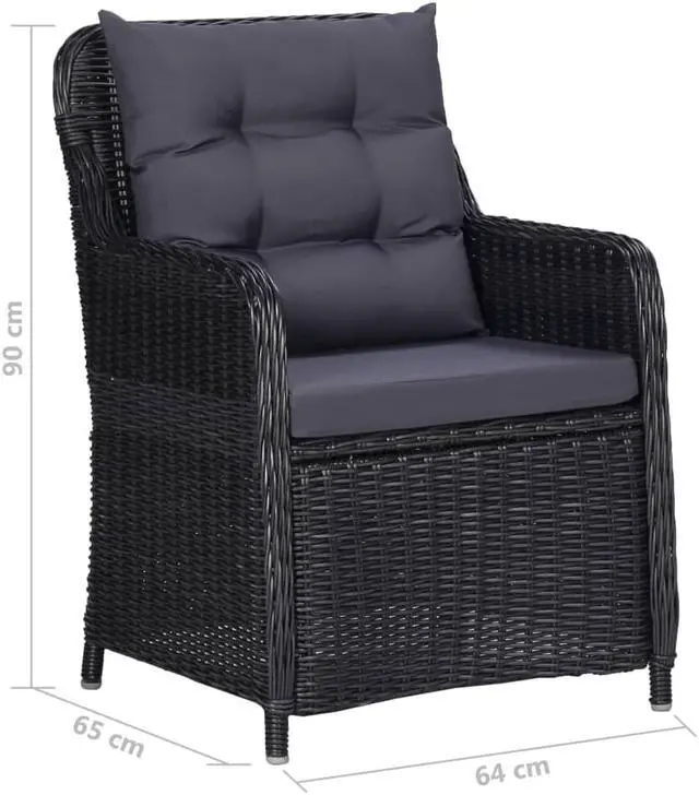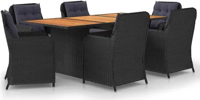 The outdoor furniture set features a sturdy powder-coated steel frame which makes it very stable and durable. Thanks to the weather-resistant PE rattan, the dining set is easy to clean, hardwearing as well as suitable for daily outdoor use. The tabletop is made of solid acacia wood, making it of high sturdiness. Moreover, the included soft seat cushions also add the set's extra comfort. The low-maintenance polyester cushion covers can be easily removed and washed.