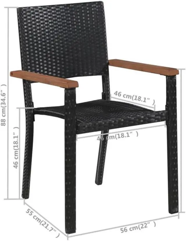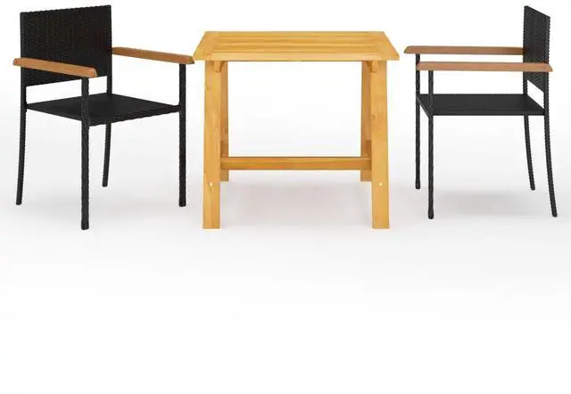 The dinner table is made of solid acacia wood with an oil finish, which makes it stable, durable and easy to maintain. Featuring a powder-coated steel frame covered with weather-resistant PE rattan, these dining chairs are sturdy and easy to clean.