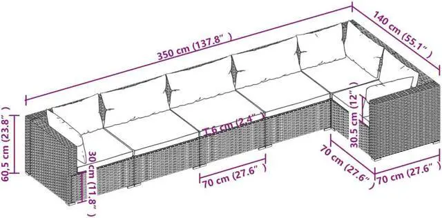 Corner/Middle sofa dimensions (each): 27.6" x 27.6" x 23.8" (L x W x H)