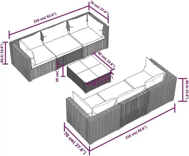 Middle/Corner sofa dimensions (each): 27.6" x 27.6" x 23.8" (L x W x H)