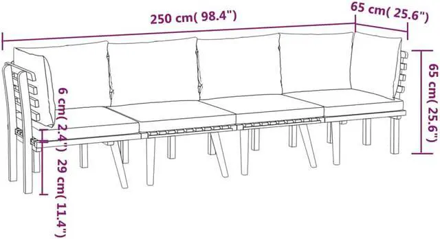 This wooden patio lounge set is an excellent choice for relaxing and enjoying the weather, taking a nap, or chatting with your family or friends. With a timeless slatted design, the wooden lounge set adds a touch of rustic charm to your patio, terrace or garden. Made of solid acacia wood, the outdoor furniture set is weather-resistant and highly durable. Combined with the thickly-padded cushions, this patio lounge set provides the utmost comfort. You can combine it with other modular segments to create your own personal garden lounge set configurations!