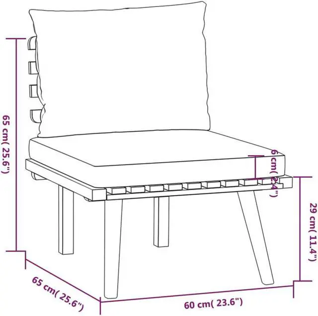 Middle sofa Dimensions: 23.6" x 25.6" x 25.6" (W x D x H)