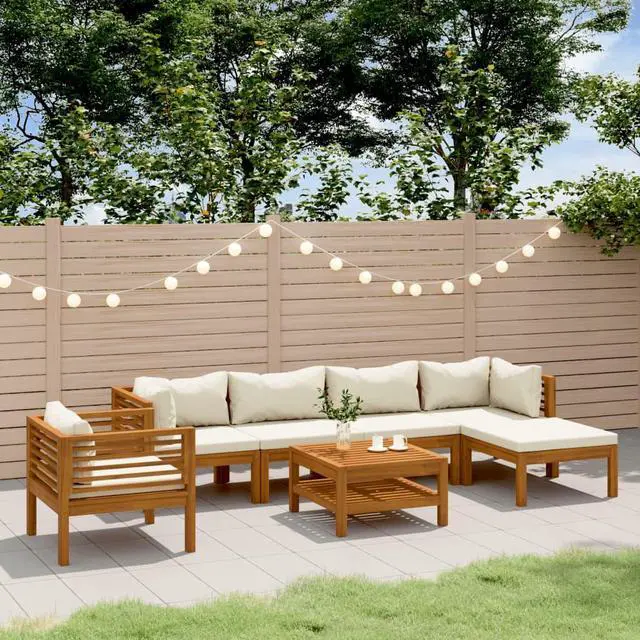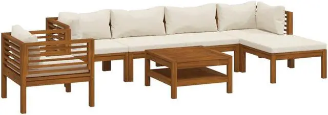 This wooden patio lounge set is a perfect combination of style and functionality. With this in your garden, you can spend relaxing and soothing time with your family and friends. Featuring a solid acacia wood frame, the sofa set is strong, sturdy and durable; and its oil finish makes the sofa set suitable for outdoor use. The removable cushions are thickly padded, so as to offer great seating comfort. A coffee table, featuring a unique slatted design, is also included. Additionally, standing out with its modular design, all parts can be arranged and customised as you need.