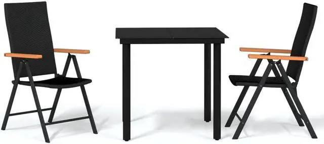 Create a compelling and cohesive aesthetic in your outdoor space with this patio dining set! This garden dinner table is made of powder-coated steel frame, which makes it sturdy and stable for daily outdoor use. The smooth glass tabletop is easy to clean with a damp cloth and perfect for placing meals, drinks and other decorative items. The patio chairs are made of PE rattan, making them lightweight and water-resistant. Besides, the chairs' backrests are with 7 reclining settings, so you can always find the most comfortable seating position. The chairs can be folded to save space when not in use.