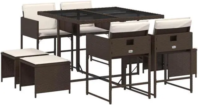 - Material: PE rattan, powder-coated steel, tempered glass