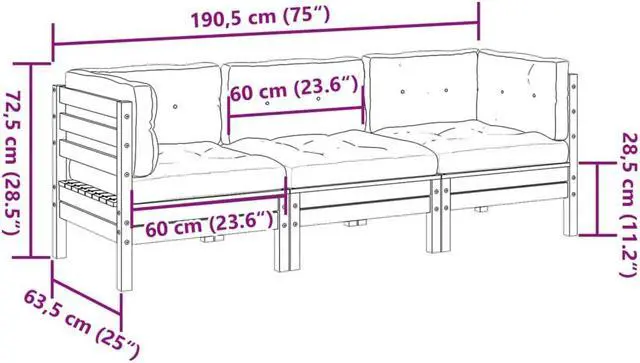 Back cushion dimensions: 23.6" x 12.6" x 4.7" (L x W x T)