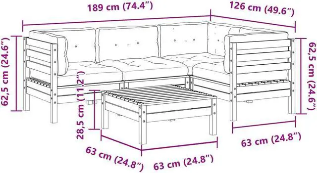 Back cushion dimensions: 23.6" x 12.6" x 4.7" (L x W x T)