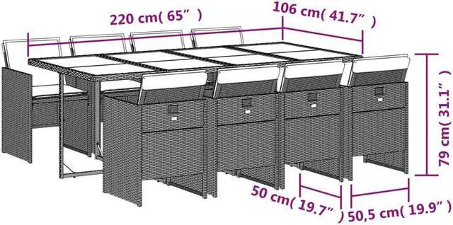 Material: PE rattan, powder-coated steel, tempered glass