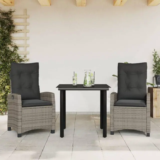 vidaXL Patio Dining Set with Cushions Garden Furniture 3 Piece Gray Poly Rattan