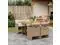 Material: PE rattan, powder-coated steel, solid acacia wood with an oil finish