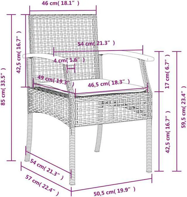 Chair cushion dimensions: 18.1" x 18.9" x 1.2" (W x D x T)