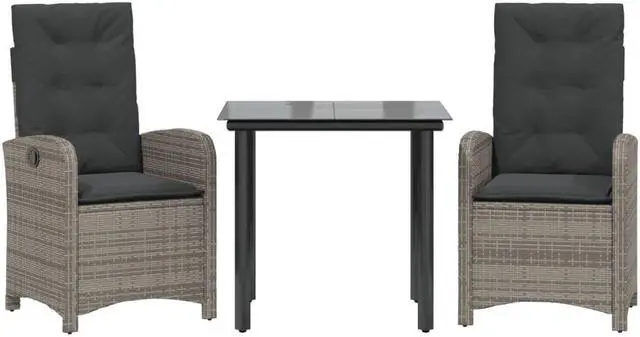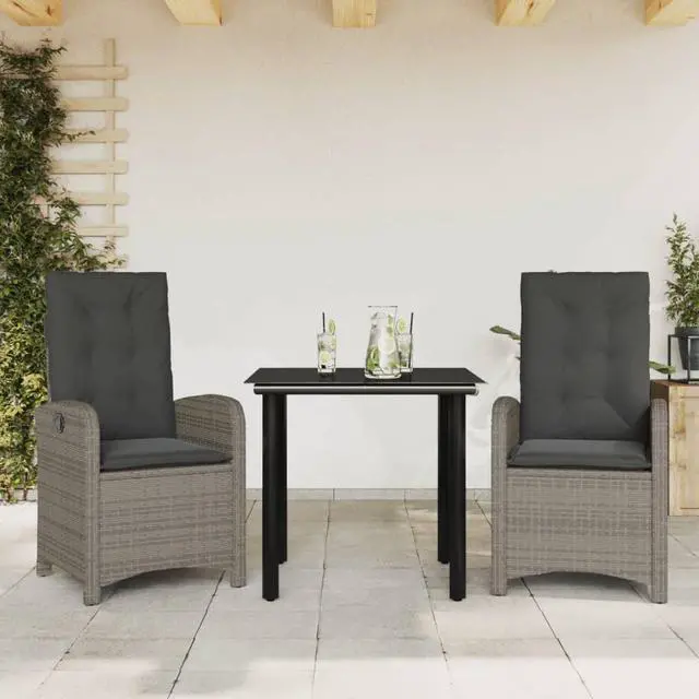 vidaXL Patio Dining Set with Cushions Garden Furniture 3 Piece Gray Poly Rattan