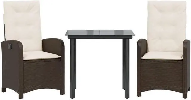 vidaXL Patio Dining Set with Cushions Garden Furniture 3 Piece Brown Poly Rattan