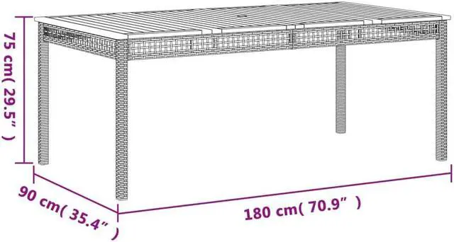 Material: PE rattan, powder-coated steel, solid acacia wood with a natural finish