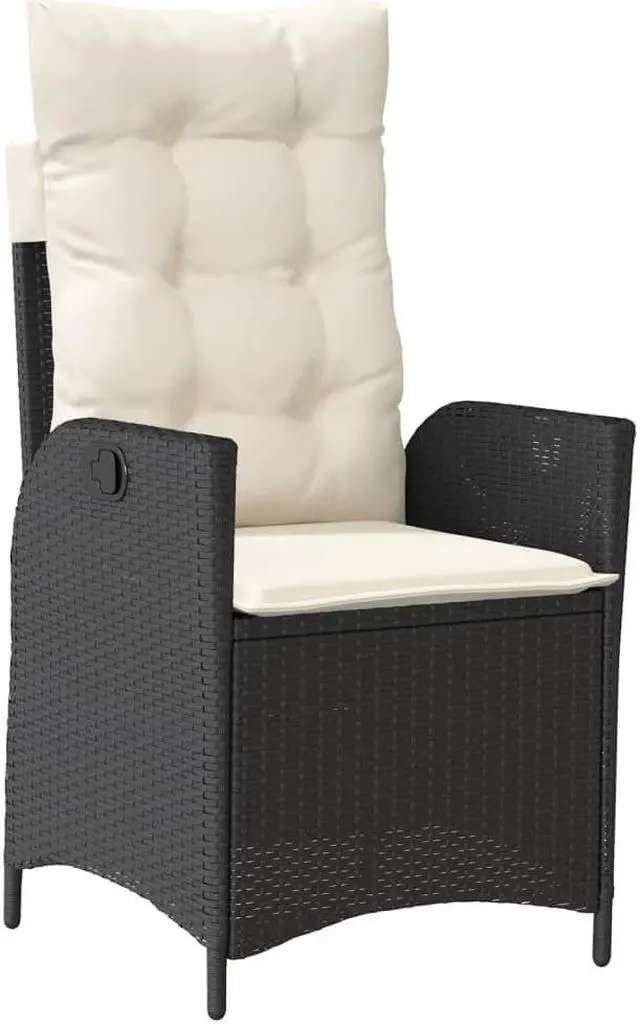 vidaXL Reclining Patio Chair with Cushions Outdoor Furniture Black Poly Rattan
