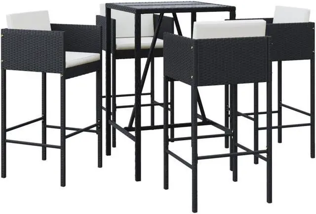 Delivery Contains: 1 Bar table, 4 Bar stools, 4 Seat cushions, 4 Back cushions