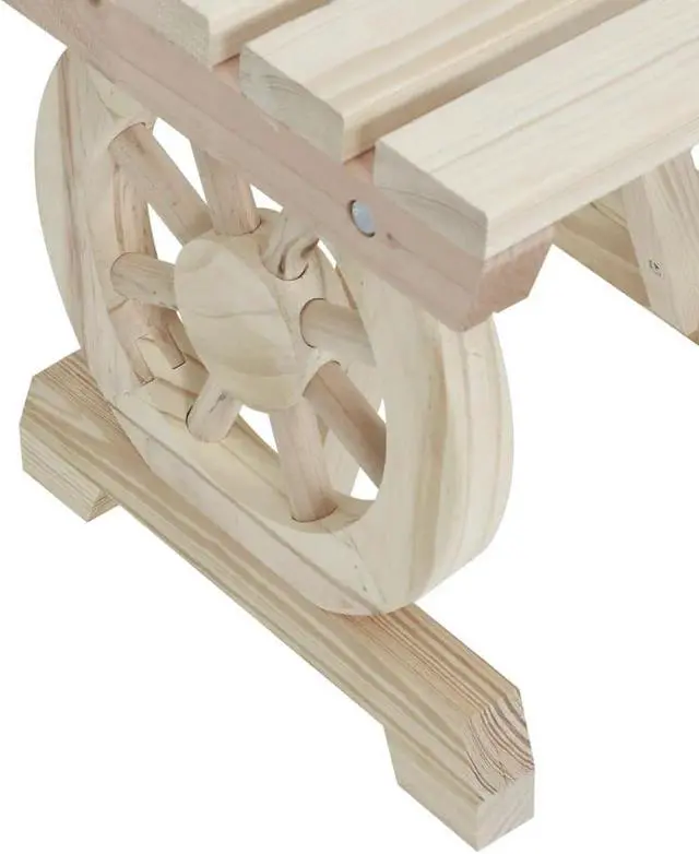 Attractive design: The armrests of the outdoor bench feature a wagon wheel design that offers an eye-catching display from every angle.