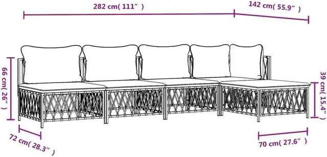 - Seat cushion dimensions: 27.6" x 27.6" x 2" (L x W x T)