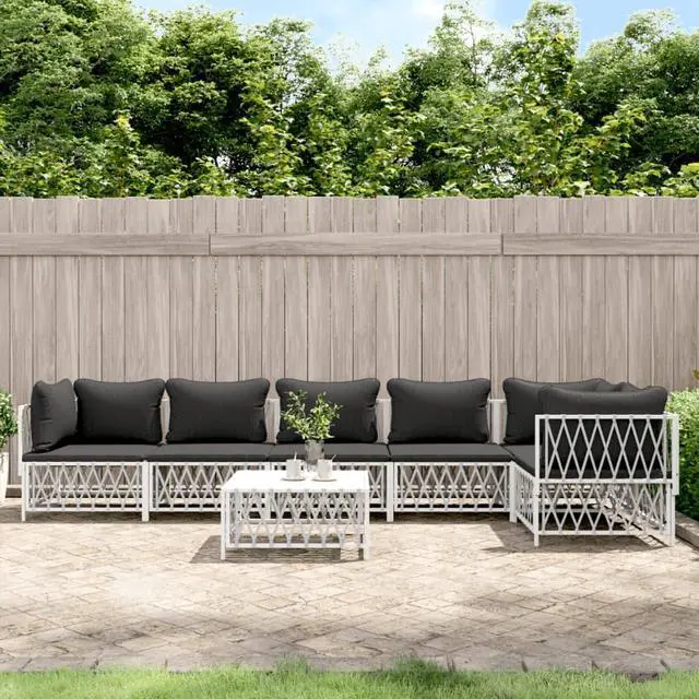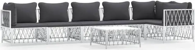 vidaXL Patio Furniture Set 7 Piece Sectional Sofa with Cushions White Steel
