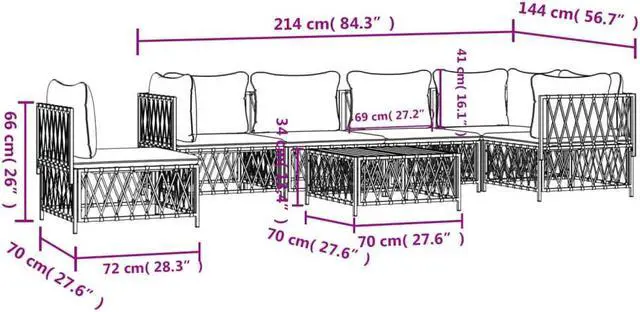 - Seat cushion dimensions: 27.6" x 27.6" x 2" (L x W x T)