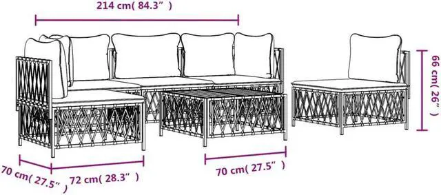 - Seat cushion dimensions: 27.6" x 27.6" x 2" (L x W x T)