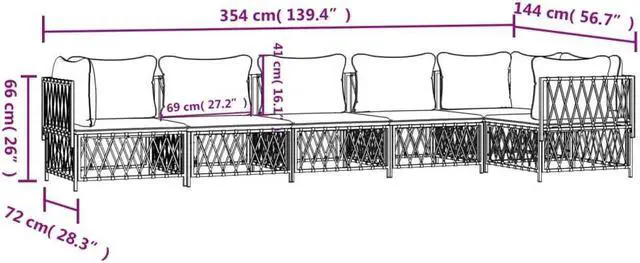 - Material: Woven fabric, powder-coated steel, textilene