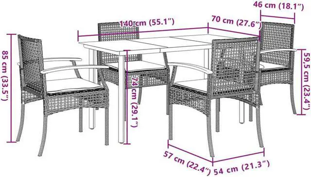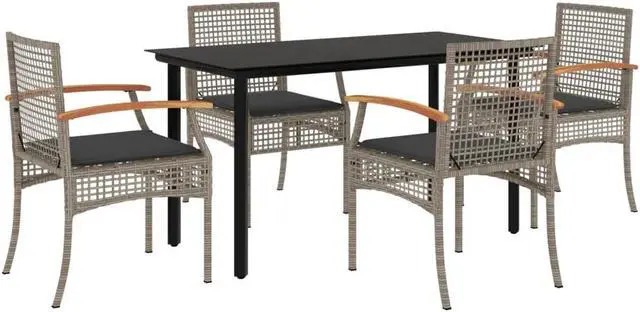 This 5-piece garden dining set is the perfect addition to any outdoor area, providing a modern and stylish seating solution that accommodates up to five people. Featuring a spacious rectangular table topped with tempered glass, the set comes with four comfy chairs made of synthetic poly rattan, designed to elevate your dining experience in gardens, balconies, or patios.